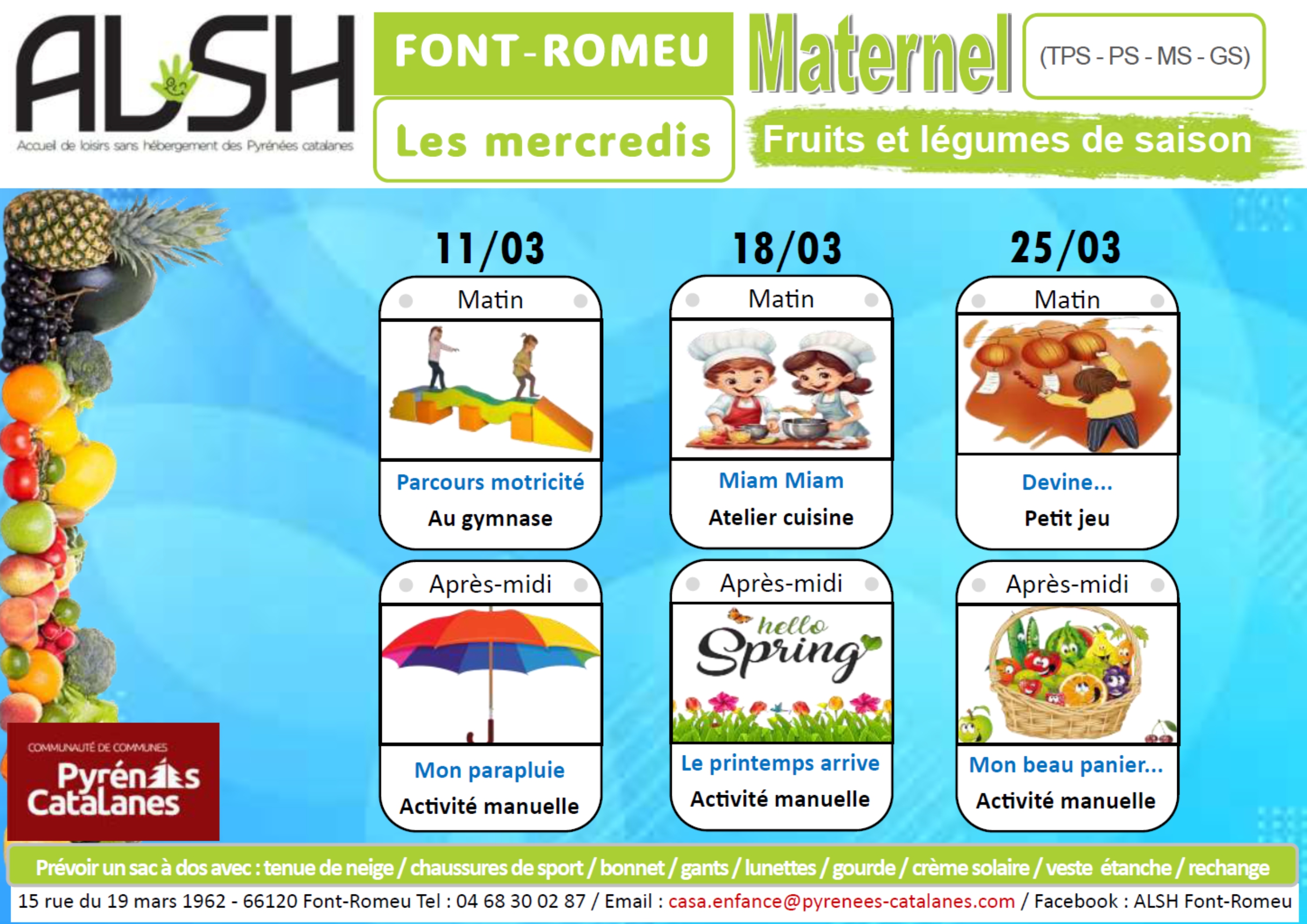 3 accueils de loisirs sont proposés et gérer par la Communauté de communes Pyrénées catalanes.